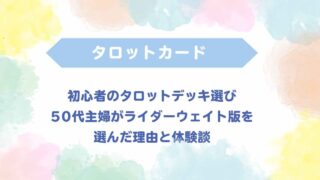 心とスピリチュアルの学び 【初心者のタロットデッキ選び】50代主婦がライダーウェイト版を選んだ理由と体験談 子供の頃から憧れていたタロットカード。初心者の私がついにウェイト版タロットを購入し、学び始めた体験談をお届けします。タロットカードをこれから始めたい方や、どのデッキを選ぶか迷っている方におすすめの記事です。 2025.05.09 心とスピリチュアルの学び